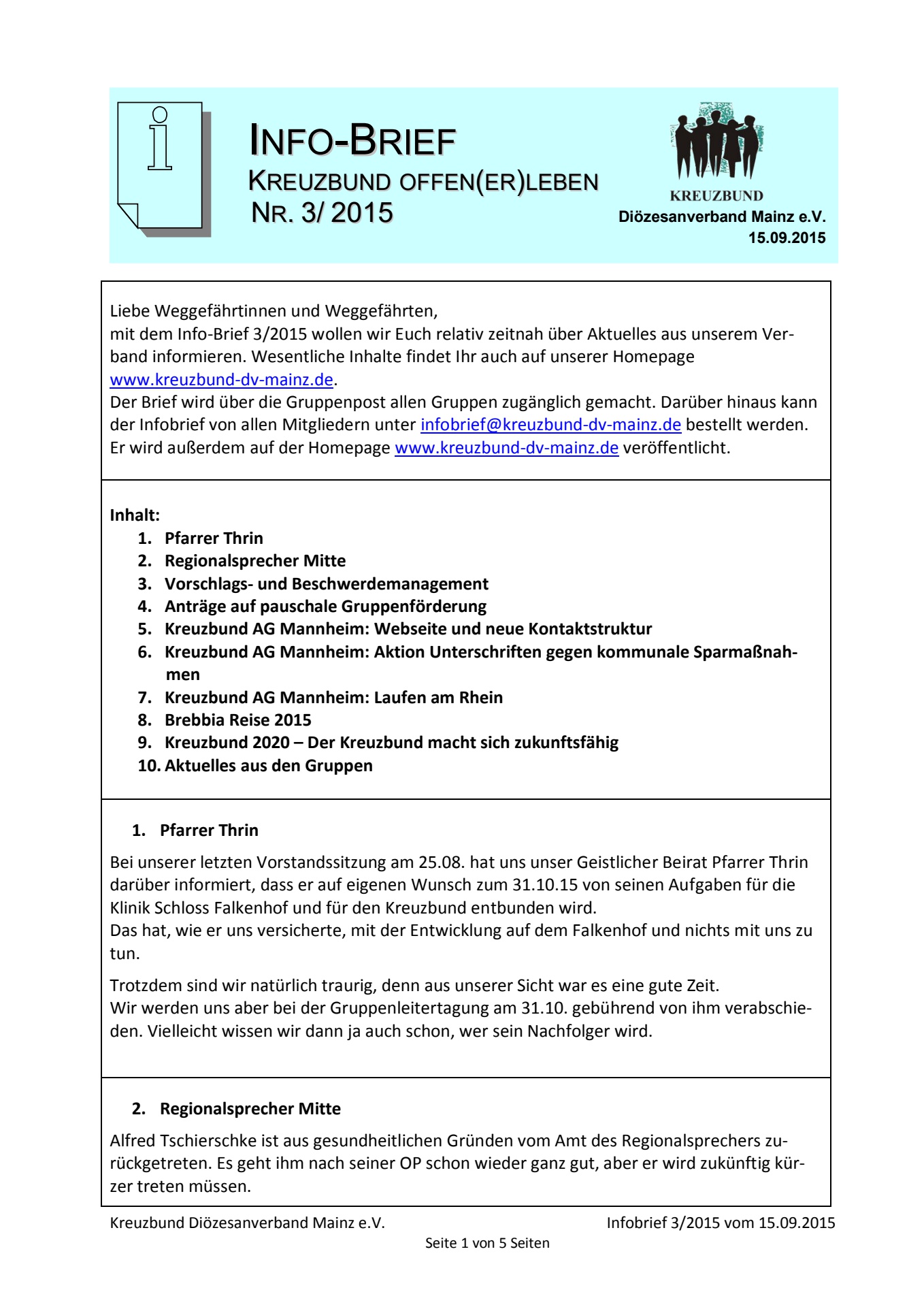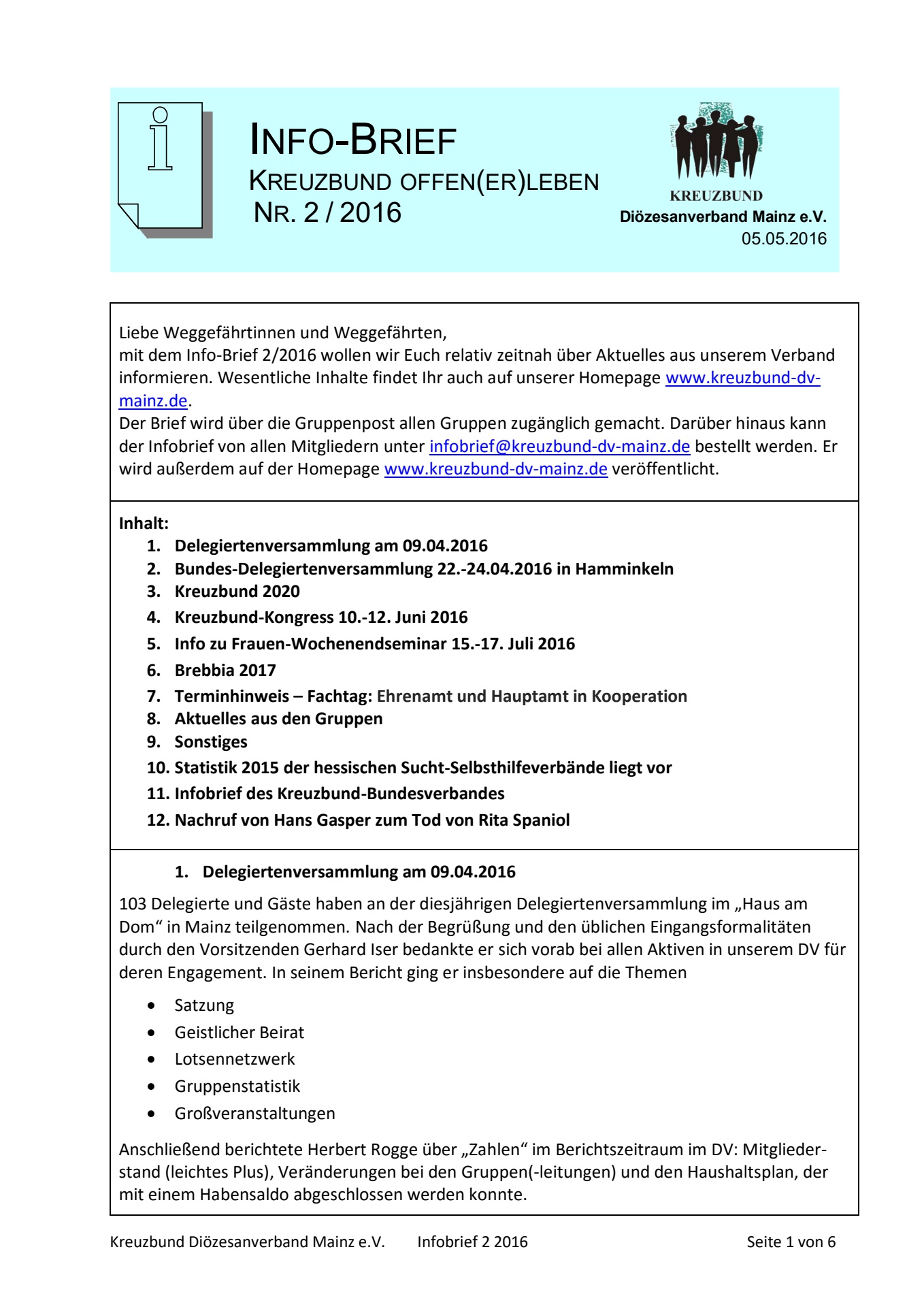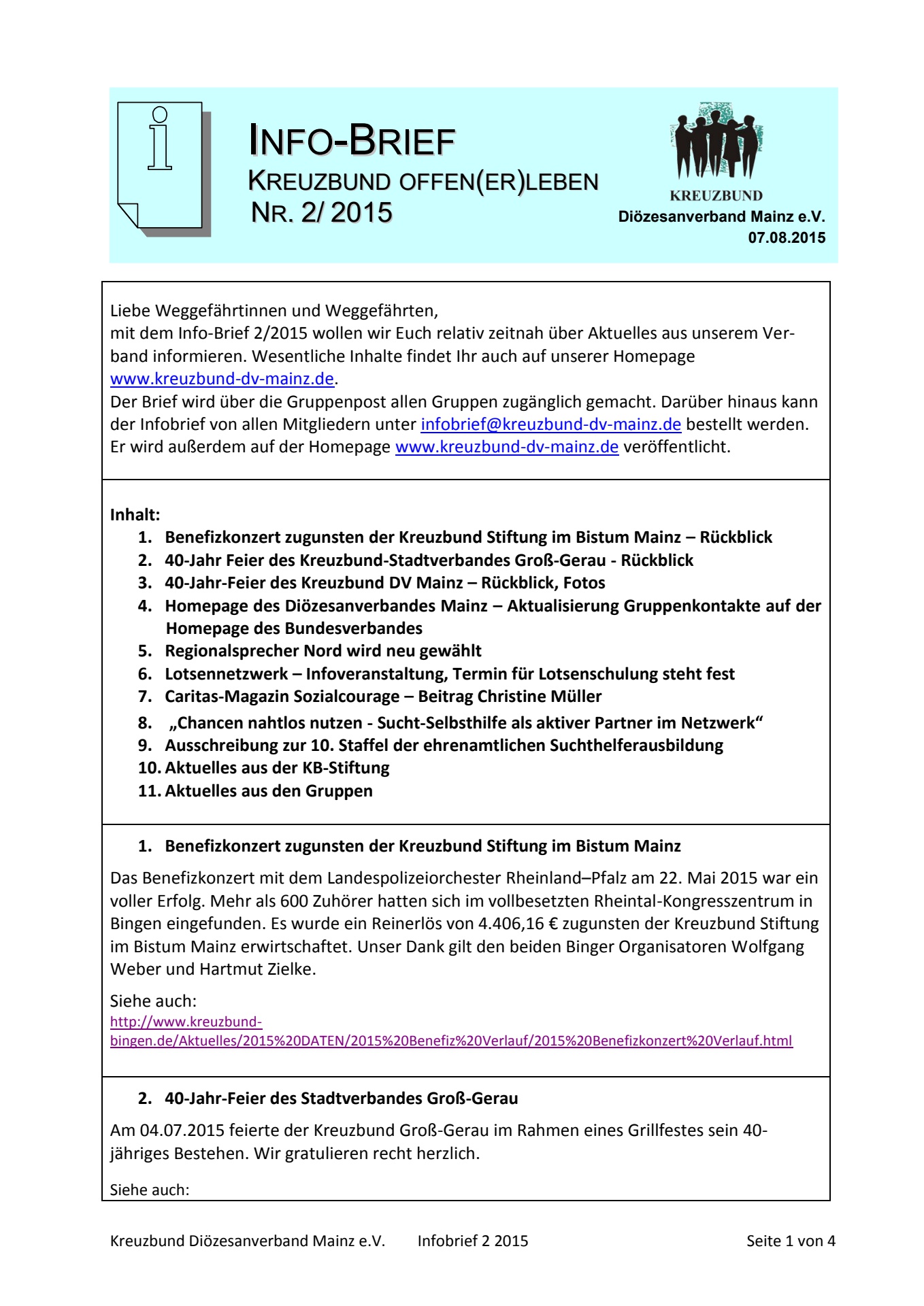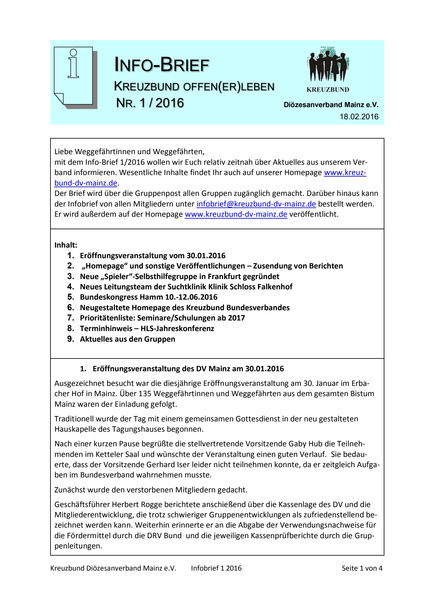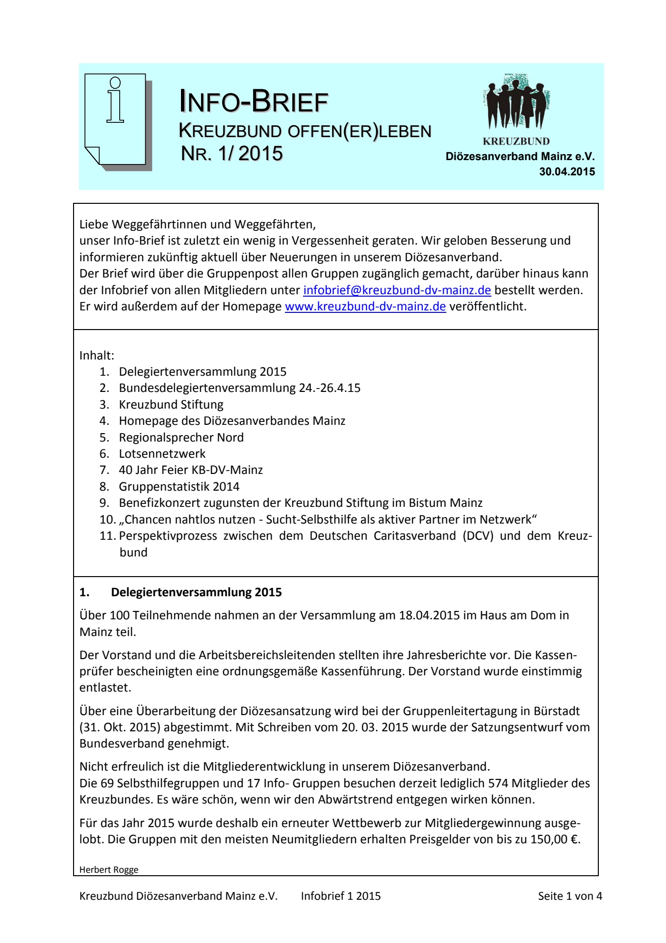 Alle Berichte des Kreuzbundes DV Mainz e.V.