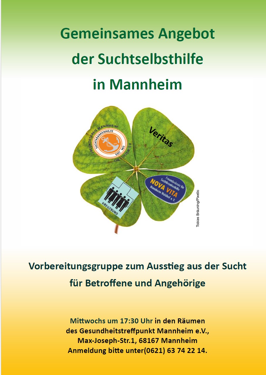 Die Mannheimer Suchtselbsthilfegruppen Kreuzbund, Veritas und die Freundeskreise Nova Vita und Die Lotsen haben sich organisationsübergreifend zusammen geschlossen, um gemeinsam eine Vorbereitungsgruppe durchzuführen.
